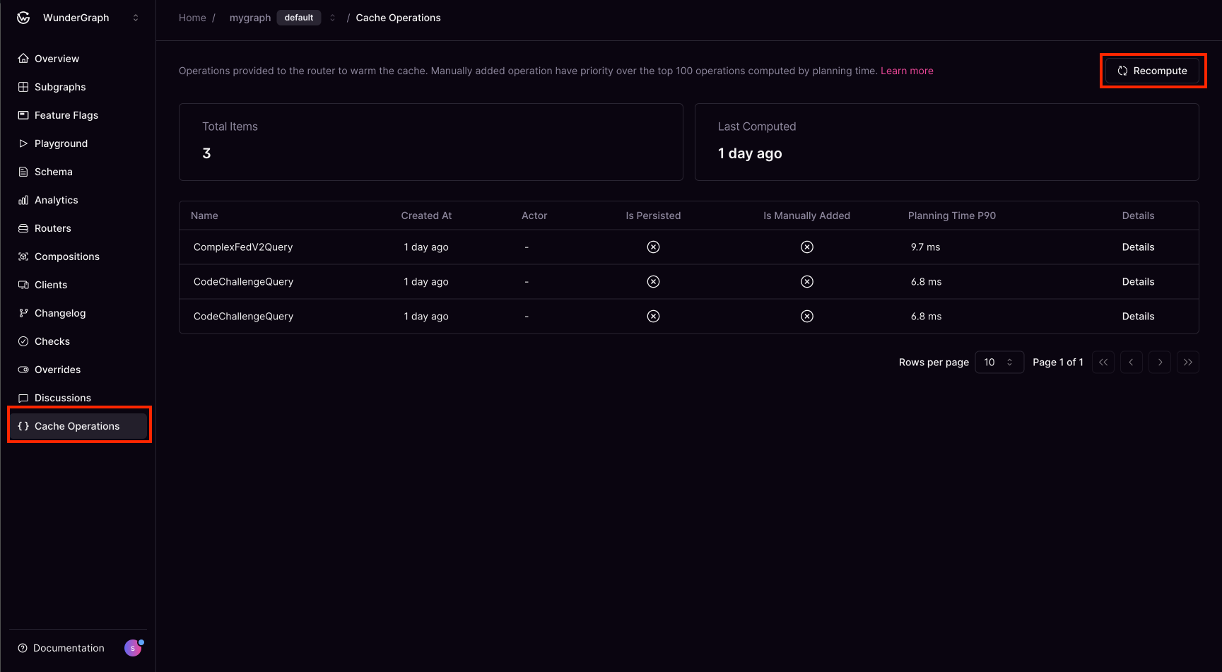 Users can manually recompute slow queries from the Cosmo Studio. Currently, recomputation only occurs when a manual operation is added or when the subgraph is published.